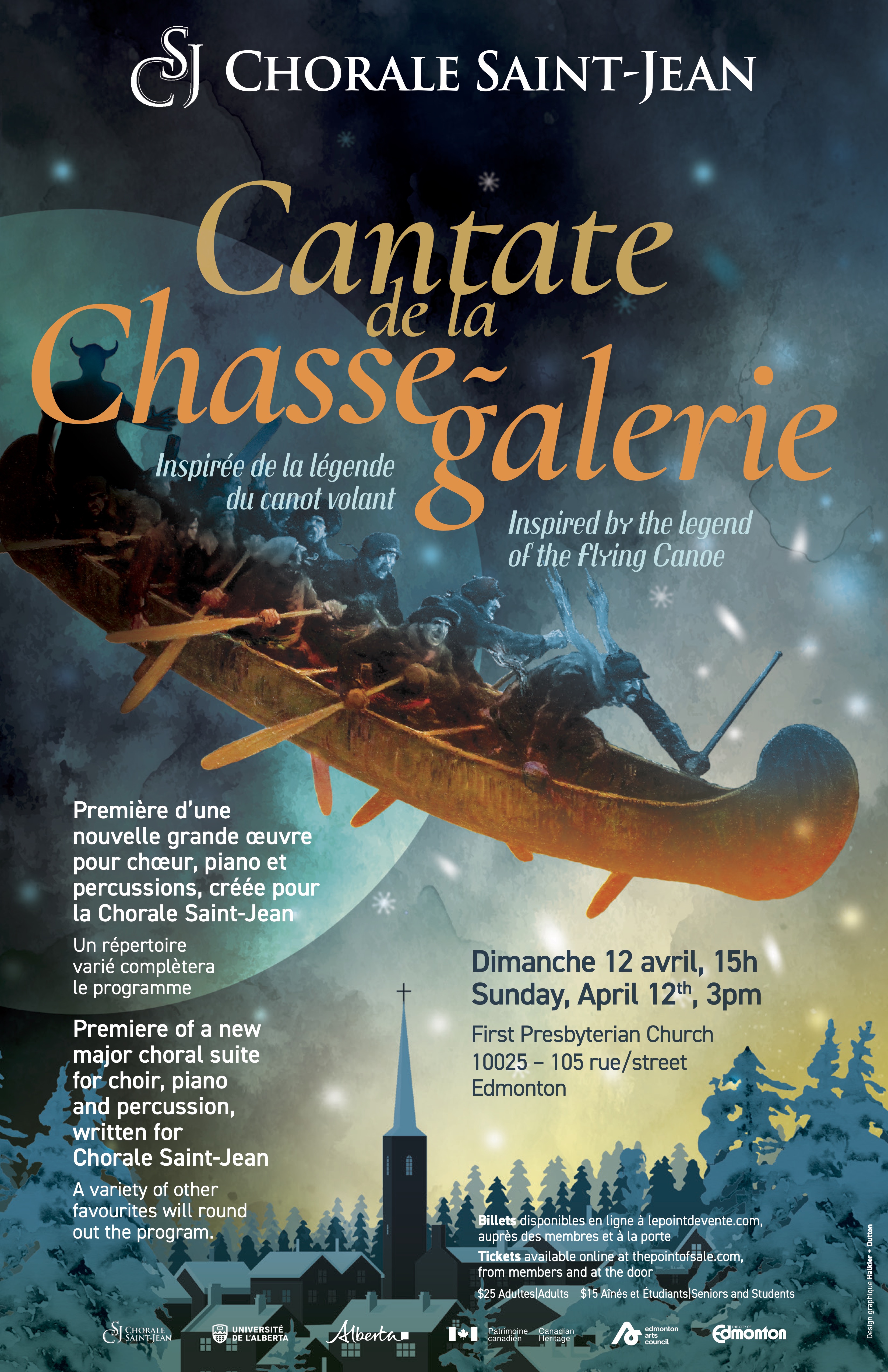 The legend of the Flying Canoe is well known, but it has never been told and sung in its entirety by a choir. On 12 April, that is going to change! Join Chorale Saint-Jean on April 12th at 3:00 p.m. to hear the premiere of a brand-new eight-movement work on this iconic and adventurous legend, composed especially for our choir. With superb lyrics by Félix Delage-Laurin, beautifully set to music by composer Rémi St-Jacques, la Cantate de la Chasse-galerie promises a whole new choral-cultural experience. A complete translation will be available. A selection of other favourites will round out this unique programme, which is not to be missed!